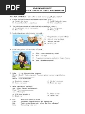 The appropriate expression to complete the text is. Expressions of wish, hope, and congratulation (contoh ungkapan dan dialog doa, harapan, dan selamat) · i wish you luck. Contoh dialog dengan hope & wish · i hope she will come. Contoh dialog percakapan expression of congratulations dialogue 1. Sudah pasti, ini akan sering dilakukan dalam suatu dialog ucapan ulang tahun. Contoh dialog percakapan tentang menyapa di berbagai via . · i wish i hadn't . I wish you continued success. I wish you were here. I wish you a happy new year. Contoh percakapan bahasa inggris tentang wish app, contoh percakapan bahasa. Berikut merupakan contoh percakapan terkait situasi tersebut. Who won the football match yesterday?